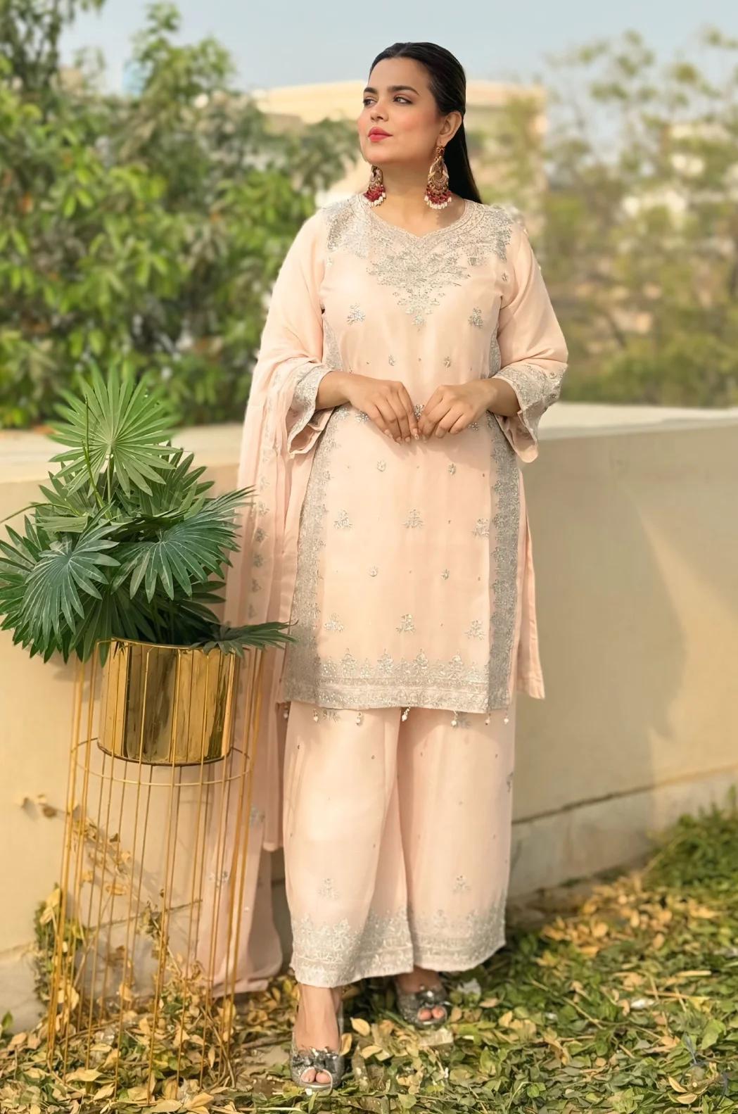 Additional Description: This exquisite Festive/Party Wear women’s Sharara set in a lovely Peach hue is perfect for all seasons. The Chiffon Dupatta, Shirt, and Trouser are intricately embroidered, adding a touch of elegance. The outfit features a Straight Leg Sharara bottom style. Elevate your style with this stunning ensemble by Inaaya Fashion.