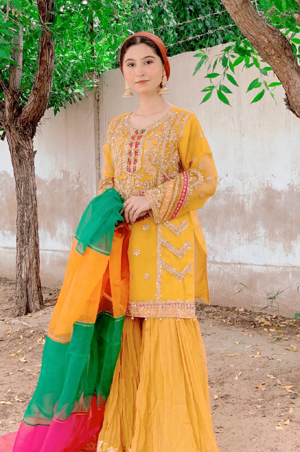 Our dresses boast a unique blend of beauty and artistry, featuring intricate Hand work on the front Side, creating a harmonious fusion of tradition and contemporary style with Contrast Multi Shade Dupatta.